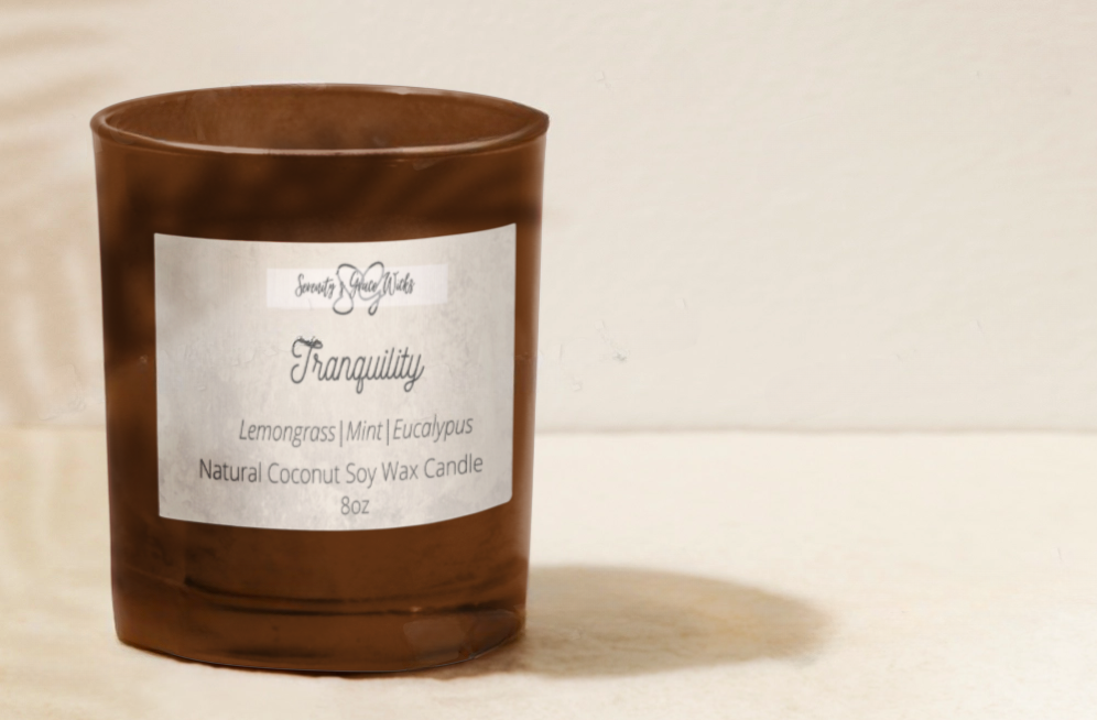 Indulge in the calming scent of Tranquility, a bright and fresh candle that will bring a sense of peace and serenity to any space. With notes of lemongrass, mint, and eucalyptus, this candle will fill the room with a light and airy fragrance that will help you relax and unwind.